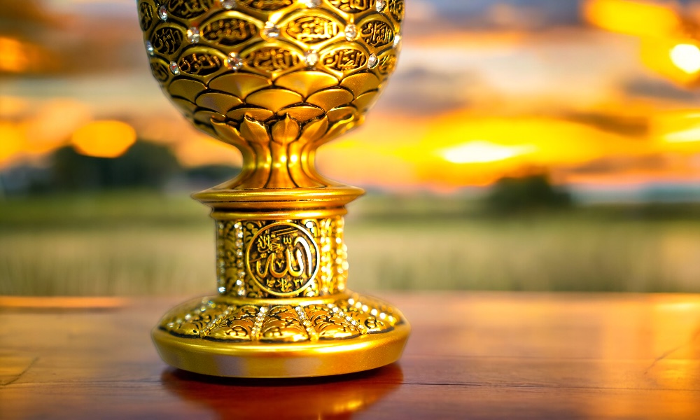 The entire surface of the trophy shines with ornate Islamic patterns, symbolizing reverence and devotion. Whether placed in your living room, prayer corner, or office, it adds a radiant spiritual charm that uplifts any atmosphere.